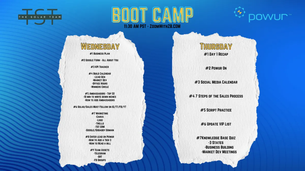 Click HERE to schedule our boot camp. (Available Every Other Week)